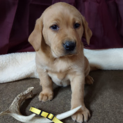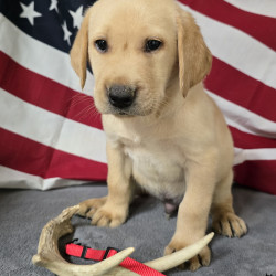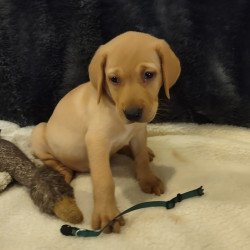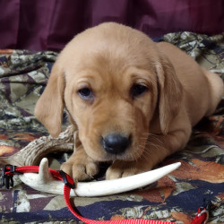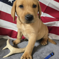 This beautiful yellow male puppy comes with Full AKC Registration, Du Claws removed, UTD on deworming and first set of vaccines. Parents are on the premises in which have been DNA Genetically tested and EIC tested. This puppy also has hunting bloodlines, He will be available August 8th to become a part of your family.