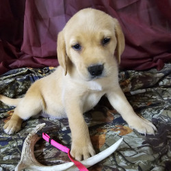 This beautiful Yellow female comes with a Full AKC Registration, duclaws removed and first set of Vaccinations. Champion upland game and Waterfowl game Bloodlines. She's ready for her fur-ever loving home today