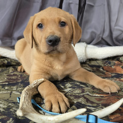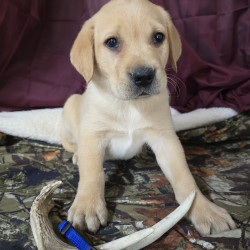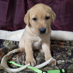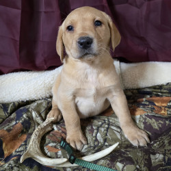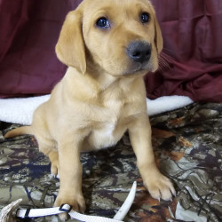 This Yellow male comes with a Full AKC Registration, duclaws removed and first set of Vaccinations. Champion upland game and Waterfowl game Bloodlines. He will be ready for his fur-ever loving home May 12