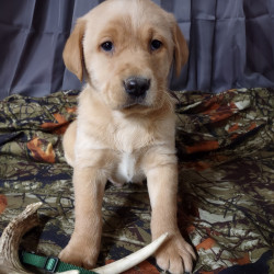 This beautiful yellow female puppy comes with a Full AKC Registration, UTD on deworming and first set of vaccines, Parents on premises and which have been DNA Genetically tested and EIC Tested, she also has waterfowl hunting bloodlines. She will be available Dec 24