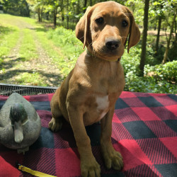 This beautiful Fox Red female puppy comes with a Full AKC Registration, UTD on deworming and first set of vaccines, Parents on premises and which have been DNA Genetically tested and EIC Tested, she also has waterfowl hunting bloodlines. She will be available Dec 24
