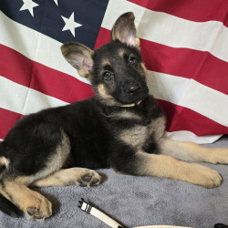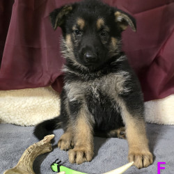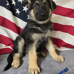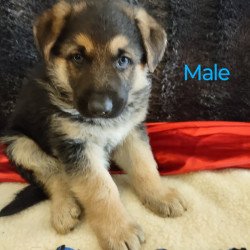 This beautiful female pup is bright and first one to the door. She comes with a Full AKC Registration, UTD on deworming and first set of vaccines, Parents on premises and which have been DNA Genetically tested, they have great dispositions, friendly and protective when needed to be. She is available to come home with you today