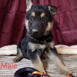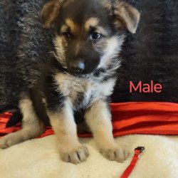 This handsome pup is a little shy but is coming around and is cute as they come. He comes with a Full AKC Registration, UTD on deworming and first set of vaccines, Parents on premises and which have been DNA Genetically tested, they have great dispositions, friendly and protective when needed to be. He is available to come home with you today