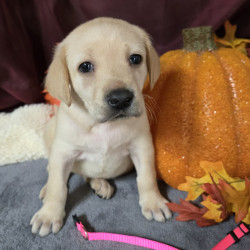 This Yellow Female is loving, cute, and friendly. She comes with a Full AKC Registration, Du claws removed, UTD on deworming and first set of vaccinations. This pup has waterfowl hunting bloodlines and goes back to Upland game bloodlines, so whatever your looking to do, she will be aiming to please. She will be available the weekend of Oct 3, Put your deposit down today, Don't let him get away