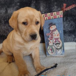This yellow puppy comes with a Full AKC Registration, du claws removed, UTD on deworming and First set of Vaccinations. Parents on premises. Will be ready Jan 6