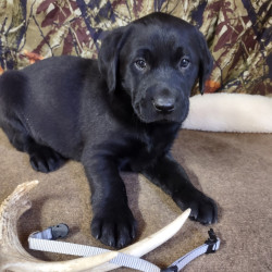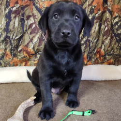 This is a blocky built male puppy, he comes with a Full AKC Registration, Du claws removed, UTD on deworming and First set of Vaccinations. These pups have waterfowl and upland game bloodlines. Both parents are on premises and have been DNA Genetically tested and EIC tested. Both parents were born and raised here at our kennel out of our Wonderful Tess and Sage. This pup will be ready for his furever home Dec. 5
