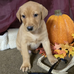 This Big yellow puppy comes with a Full AKC Registration, du claws removed, UTD on deworming and First set of Vaccinations. Parents on premises. Will be ready Jan 6
